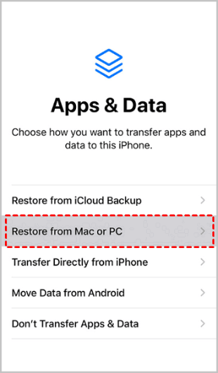 Step 6. Set up your new iPhone until you reach the Apps & Data screen.