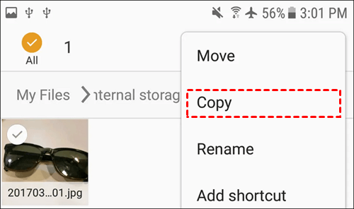 Step 2. Locate the folder containing your photos, usually stored in the Camera folder in the DCIM directory. Once located, select the desired photo and choose the Copy or Move option.
