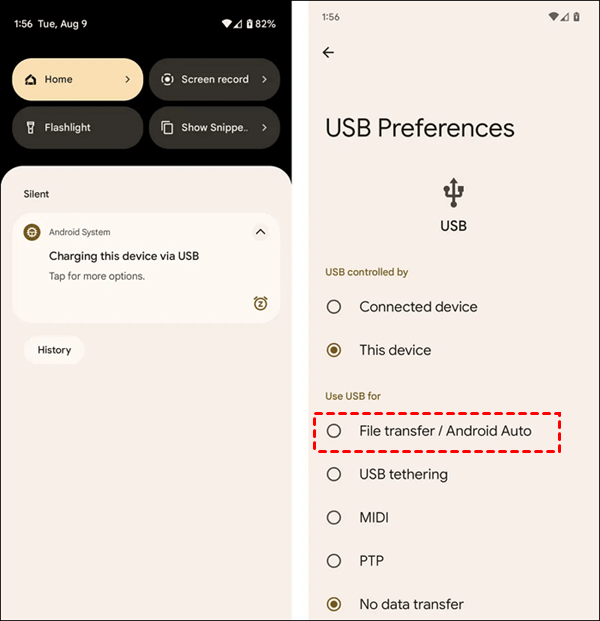 Step 1. Connect your Android device and external hard drive to your computer using a USB cable > Unlock your phone and select File transfer/Android Auto mode.