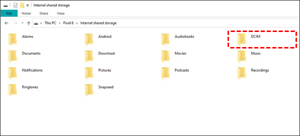 Step 2. Open Windows Explorer on your computer and go to your Android device’s folder > Find the folder containing the photos (usually named DCIM) and copy them.