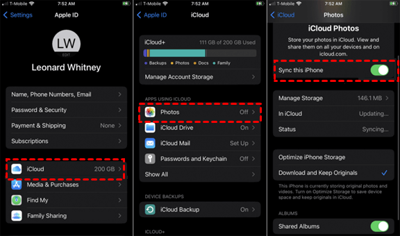 Step 2. Turn on iCloud Photos to sync all pictures to iCloud.