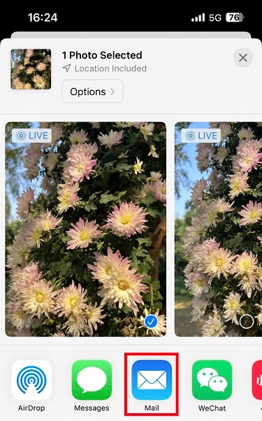 Step 2. Select the photos you wish to share > Tap Share icon from the list.
