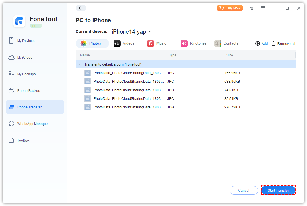 If you're looking for a simple and effective way to transfer photos from pc to iPhone without Internet, FoneTool is the perfect solution.