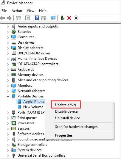 Step 4. After reconnecting your iPhone, the driver should install automatically. If you see an option for Update driver, click on it to update the driver.