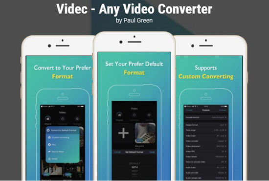 Videc - Any Video Converter is a good iPhone video converter app. Through it, you can quickly and easily convert or edit any video format such as MP4, MOV, MKV, ASF, WEBM, WMV, MPEG, 3GP, etc. It allows you to convert video files to formats compatible with your Android and customize settings for more ideal output.