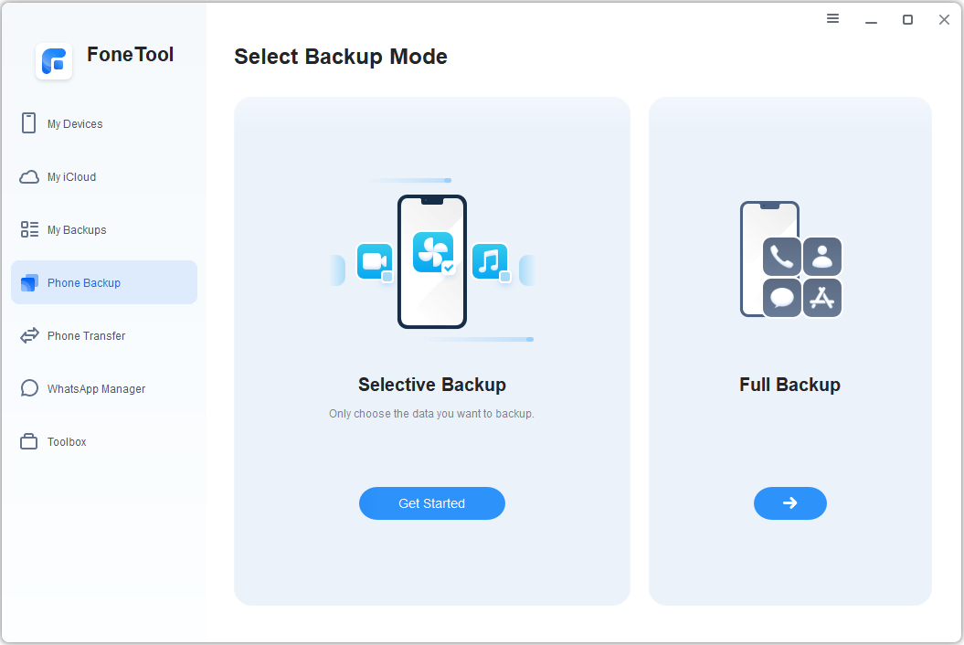 Step 1. Launch FoneTool > Go to Phone Backup > Choose Selective Backup> Tap Get Started.