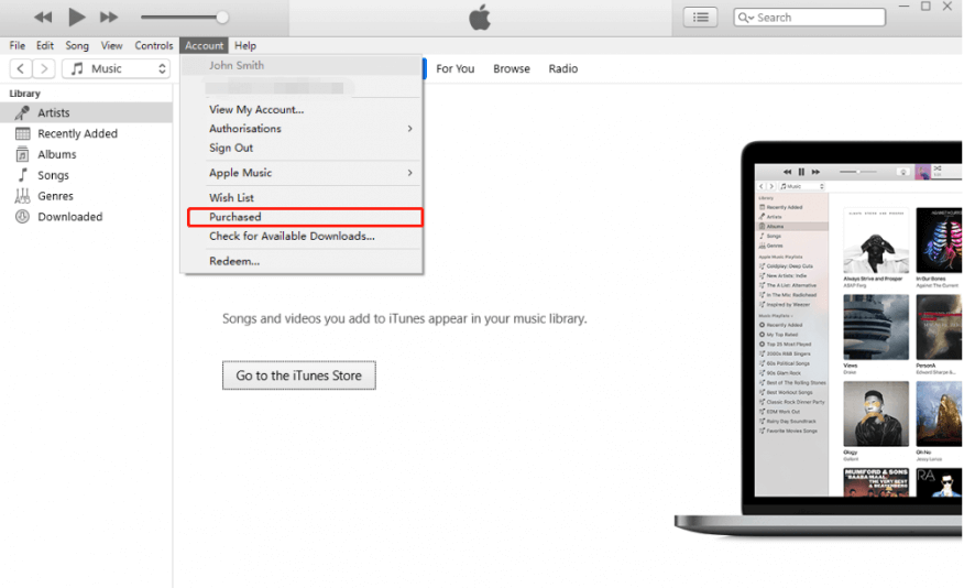 Step 1. In iTunes, go to Account > Purchased (or Family Purchases if using Family Sharing).