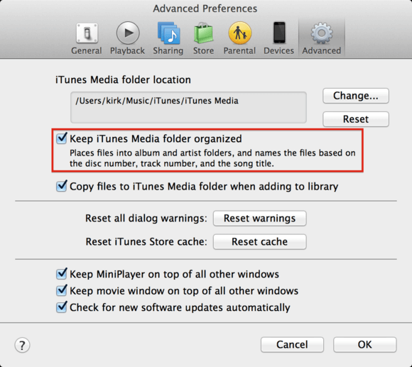 Step 2. Verify that the 'Keep Music Media folder organized' option is checked.