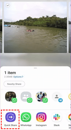 Step 2: Open the specific files you wish to share > Long-press the file and then tap the Share icon within the app and select Quick Share from the array of sharing alternatives.