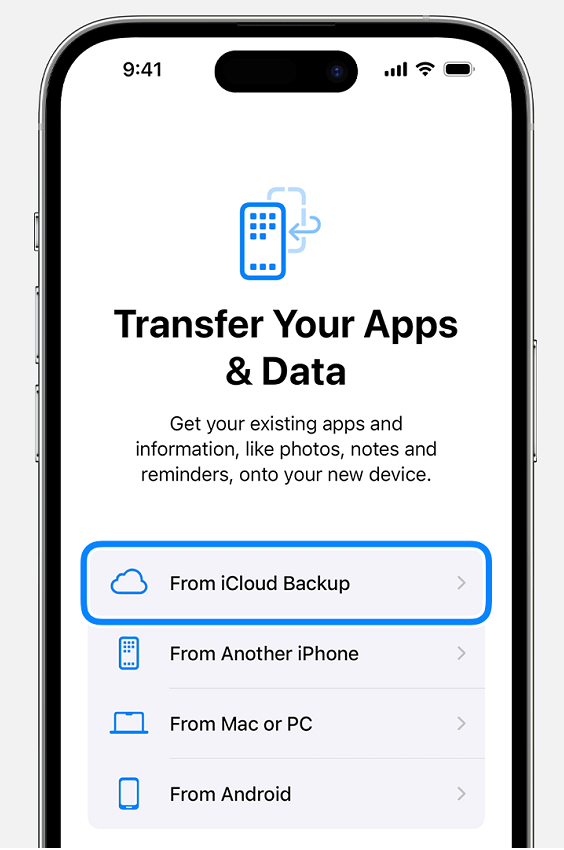For users who already have an iCloud backup, the best method to set up your new iPhone is to restore from a recent iCloud backup. You can tap Restore from iCloud Backup during the setup process to make it. If you don't have backed up old iPhone, transferring from iPhone will also be OK.