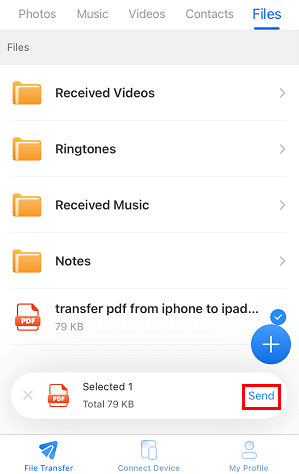 Step 4. Check the wanted PDF files > Tap Send to begin the transfer.