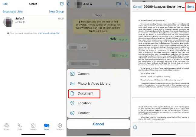 Step 3. Find and select the PDF file > Finally, tap Send.