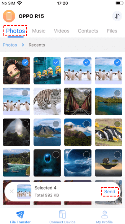 Step 4. Go to File Transfer on iPhone > Choose files you need to airdrop > Click Send to continue.