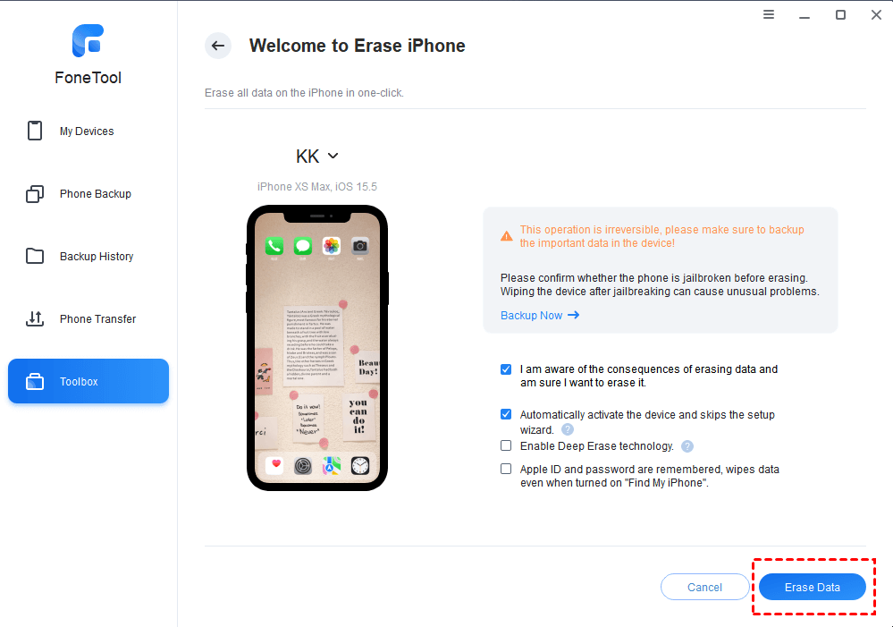 FoneTool desktop version guarantees that your privacy stays intact. Trust in FoneTool to effortlessly wipe your iPhone clean, leaving you with a fresh start and a device ready for its next adventure.
