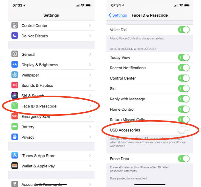 2. Disable USB Restricted Mode on iPhone