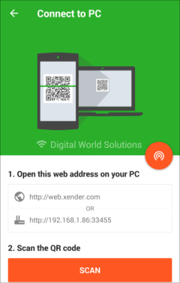 >> On your Android phone, open Xender and tap on Connect to PC option, usually located in the side menu.