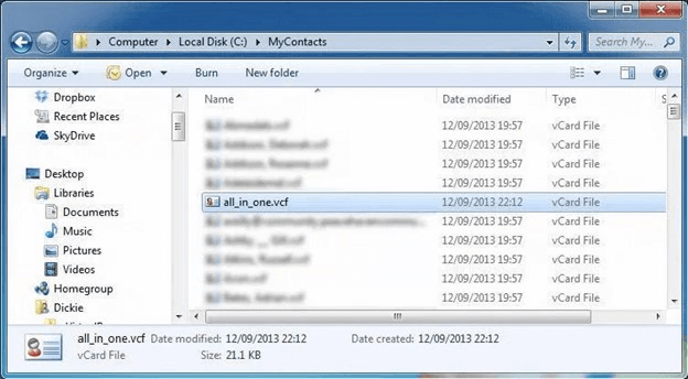 Step 3. Connect your Android to PC with a USB cable > Click Open My PC and find your mobile device > Go to internal storage folder > Locate and copy and paste the VCF file to the local folder on your PC.