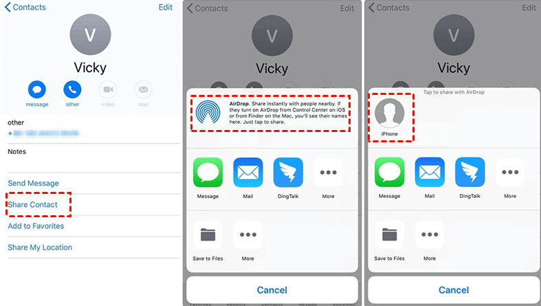 Step 2. On an older iPhone, open the Contacts app and locate the contact you want to share > Tap Share Contacts and select AirDrop.