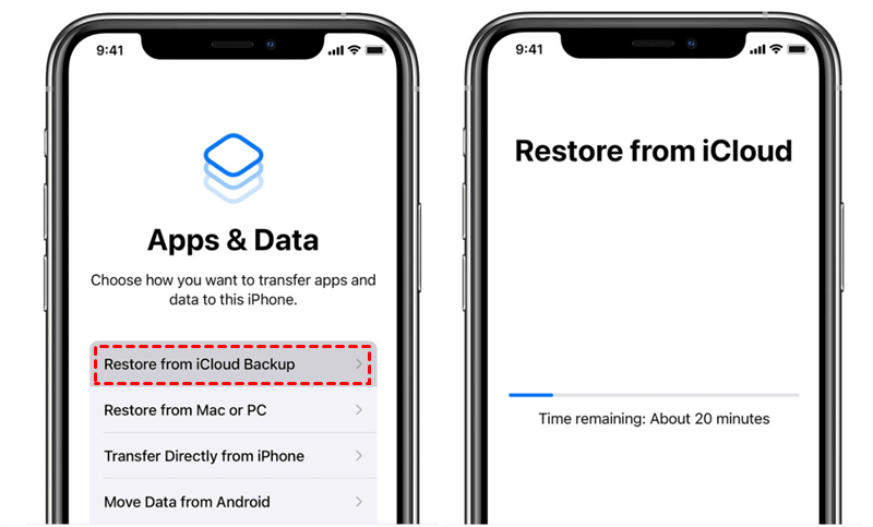 Step 3. Start setting up your new iPhone and when you get to the Apps & Data screen, select Restore from iCloud Backup. Select the most recent backup you created to restore your data and contacts.