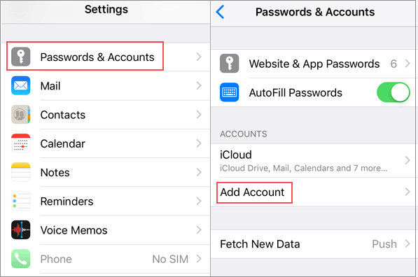 Step 1. Open your iPhone, Launch Settings > Passwords & Accounts > Add Account > Google > Click Continue > Input your Google account and sync the data.