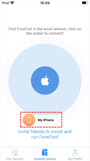On your iPhone: Run File Transfer > Tap Send > Choose File or Folder where the files are stored, Click OK > Select the target device.