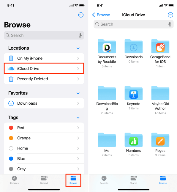 Step 2. Launch the Files app > Choose Browse > Click iCloud Drive. Now you can preview the uploaded items.