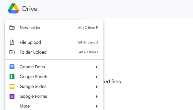 Step 1. Go to https://drive.google.com/ on your computer > Log in with your Google account > Click the New button and choose File Upload or Folder Upload to import data to Google Drive.