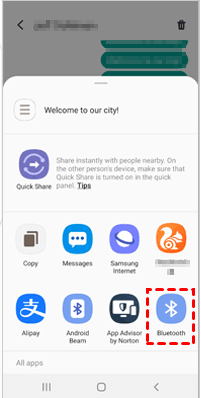 Step 2: Open the Messages app on the source Android device > Choose the messages you intend to transfer > Tap Share within the Messages app and select Bluetooth.