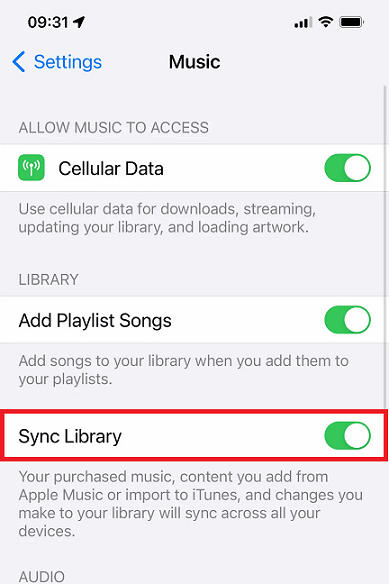 Step 4. Toggle on Sync Library. Your subscribed iTunes music will now be available on your iPhone.