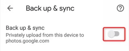• Select the Settings option > Turn on Backup & Sync option, and the photos will sync to your Android device.