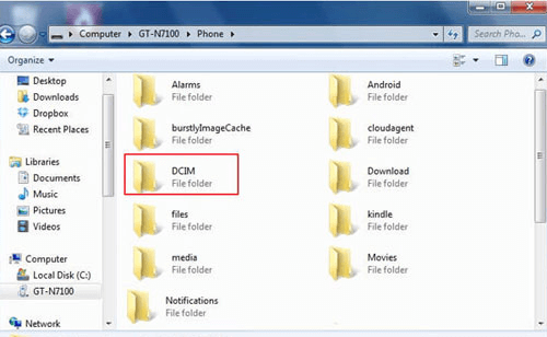 Step 3. On your computer, go to My Computer > Locate and click your Android phone’s name > Open the DCIM folder to select and transfer wanted photos to anywhere on your PC.