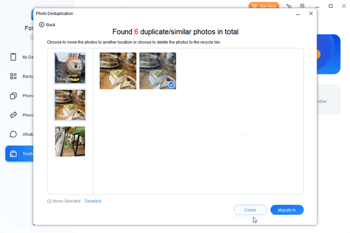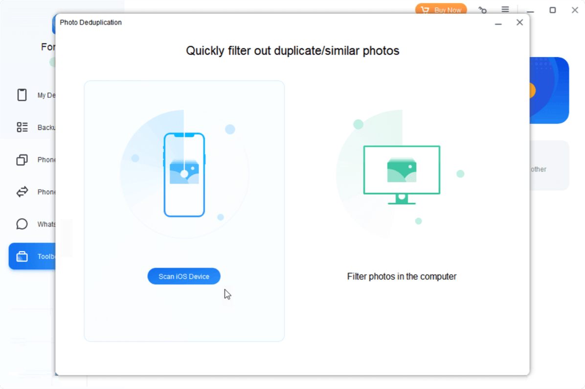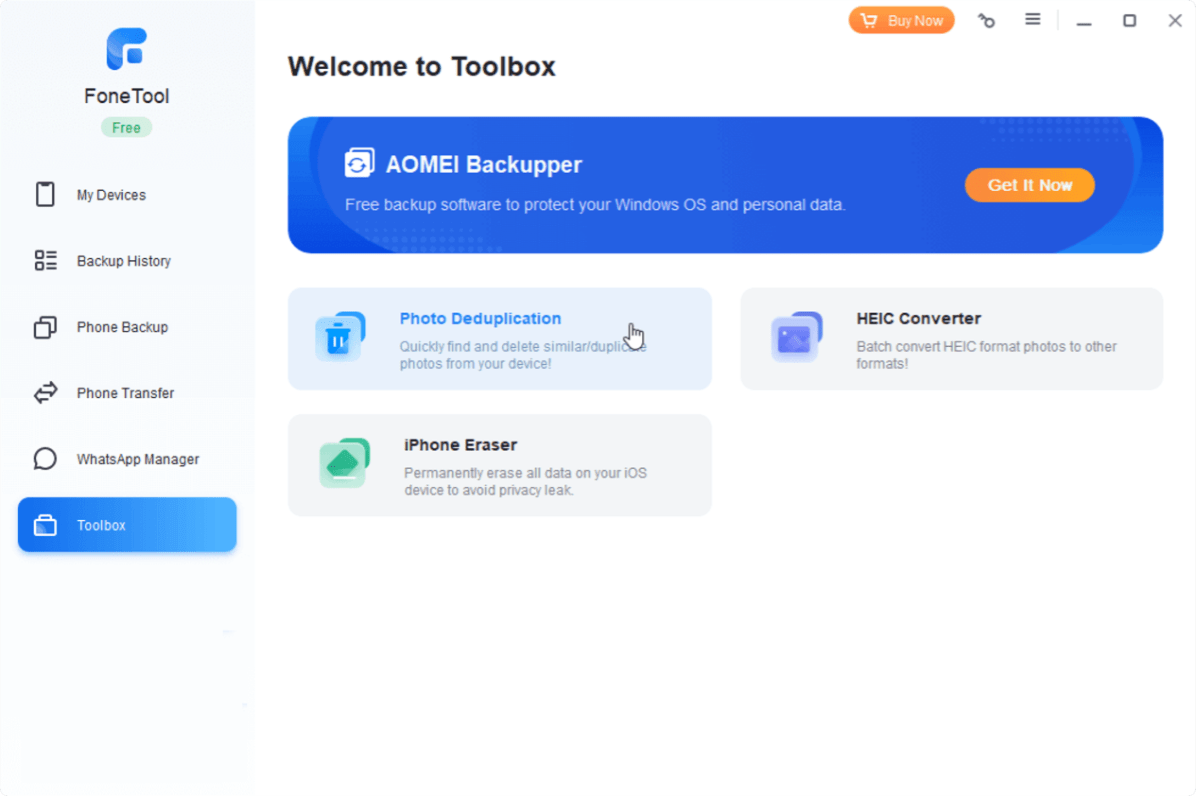 Click “Toolbox” on FoneTool > Choose “Photo Deduplication”.