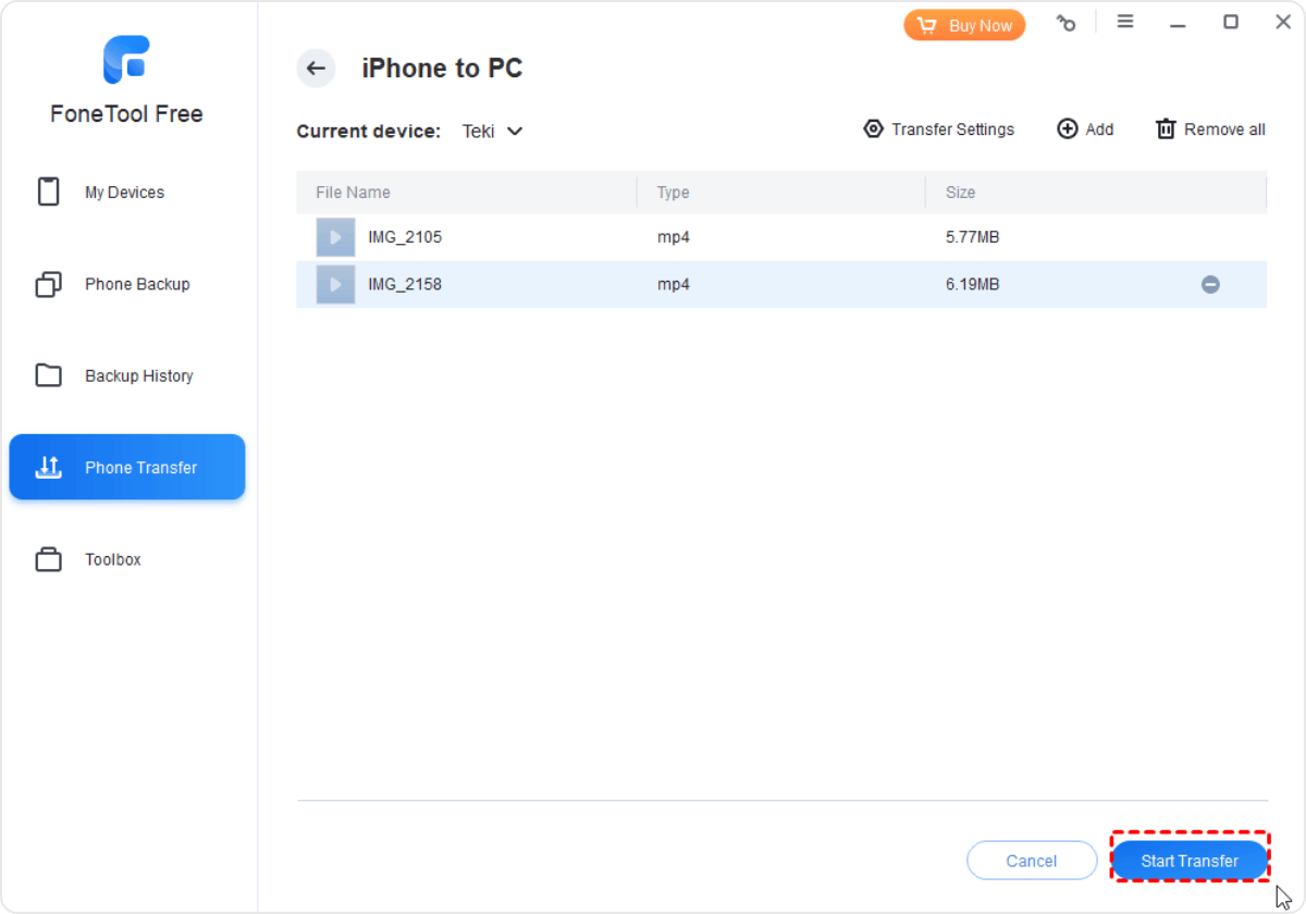 FoneTool transfers files, including video files, from iPhone to PC with the steps aforementioned. All steps can be completed without internet.