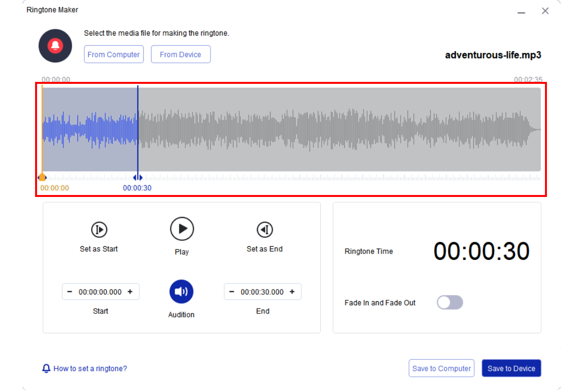 With FoneTool Ringtone Maker, you can apply a fade-in effect at the beginning of the ringtone and a fade-out effect at the end. This will make your ringtones sound more natural and smooth.