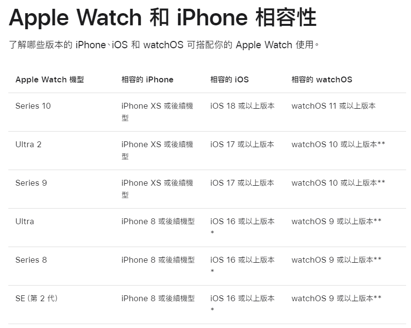 如果iPhone與Apple Watch的版本不想配,那麼就會出現Apple Watch無法與iPhone配對的情況。比如您的手機是iPhone 7,iPhone 7無法更新到iOS 16,但是您的Watch是SE(第2代)。那麼,您的Apple Watch無法配對新手機。如何確定iPhone與Apple Watch是否配對,可以參考Apple支援給出的與Apple Watch各版本相容的iPhone型號表。
