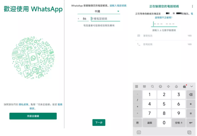 從 App Store 下載 WhatsApp 應用程式 > 啟用 WhatsApp,閱讀並同意服務條款。