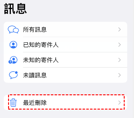 3. 這將顯示當前位於最近刪除檔案夾中的簡訊和對話。