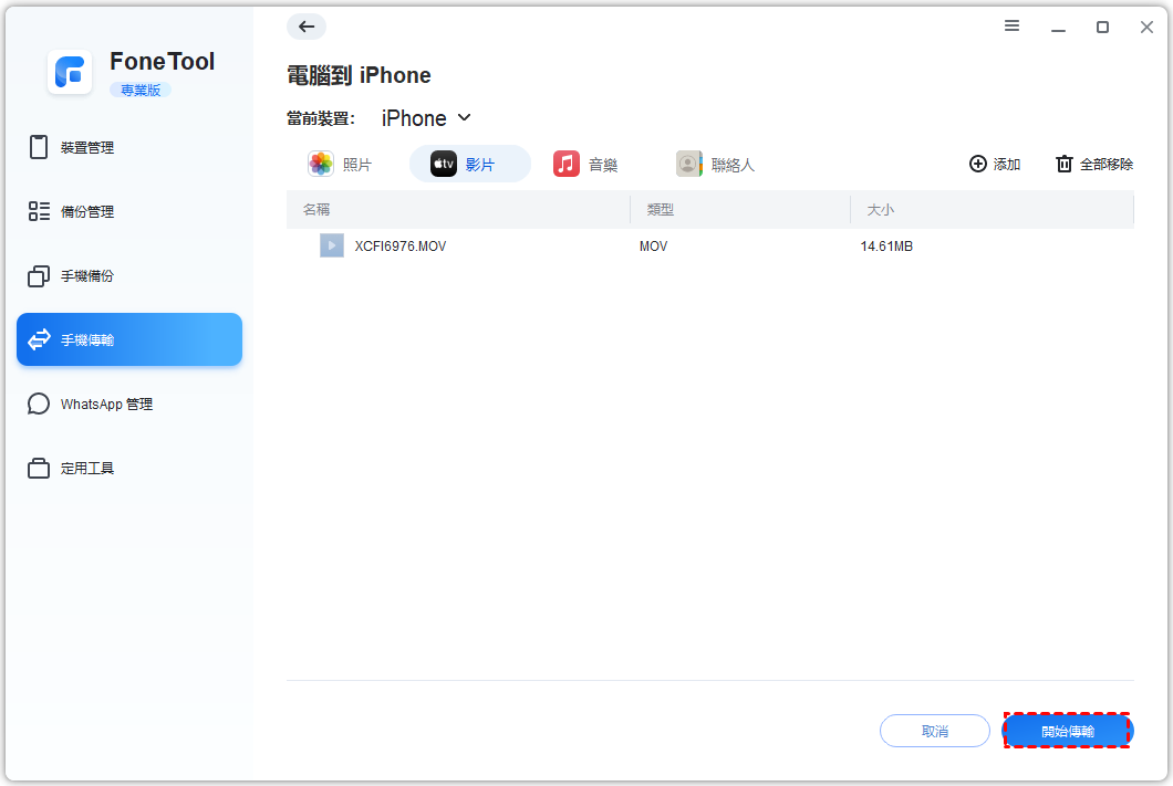 要在iPad上觀看電影,您還可以選擇將影片從電腦傳輸到iPad以避免iTunes錯誤。向您推荐一款專業的傳輸工具——FoneTool。
