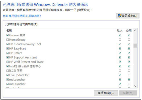 3. 點一下允許應用程式透過防火墻進行通訊。