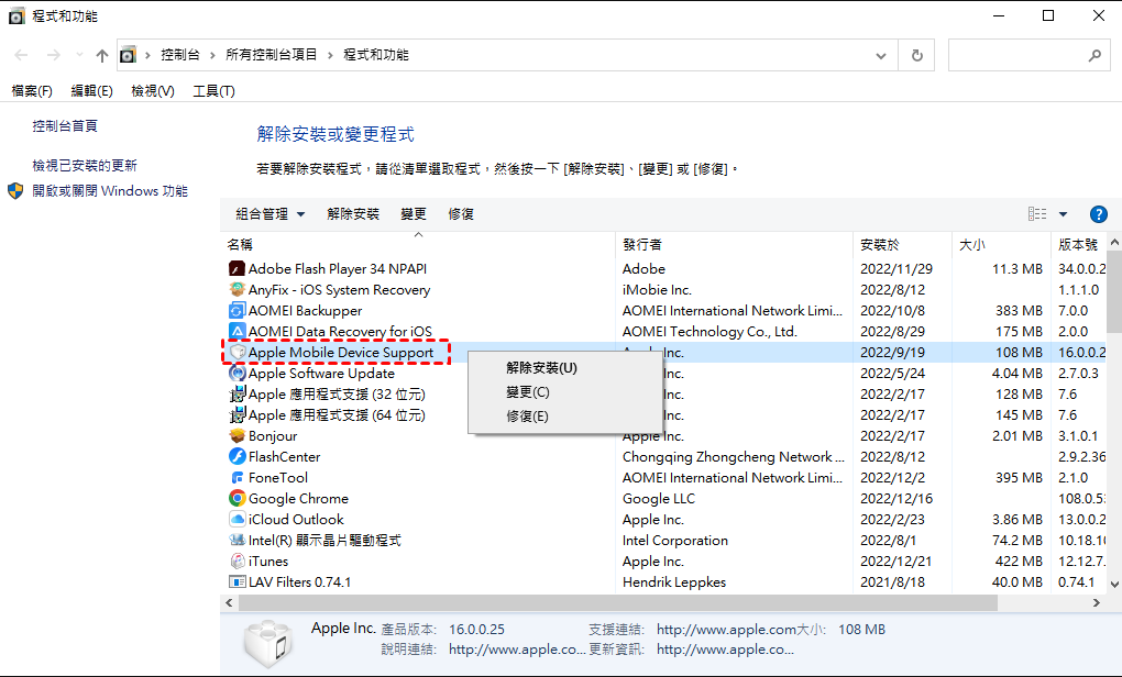 您需要按照以下步驟完全解除安裝iTunes,然後從Apple支援下載iTunes來重新安裝。