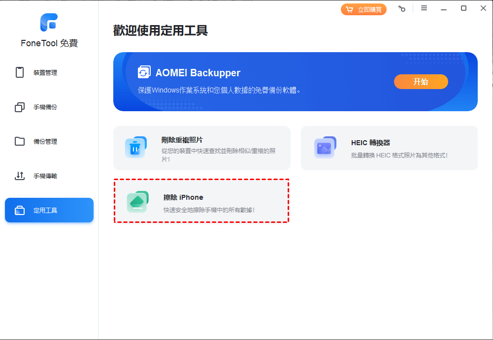 立即獲取解決方案FoneTool帶來先進的技術和功能,專業且靈活,是刪除iPhone/iPad數據的首選。