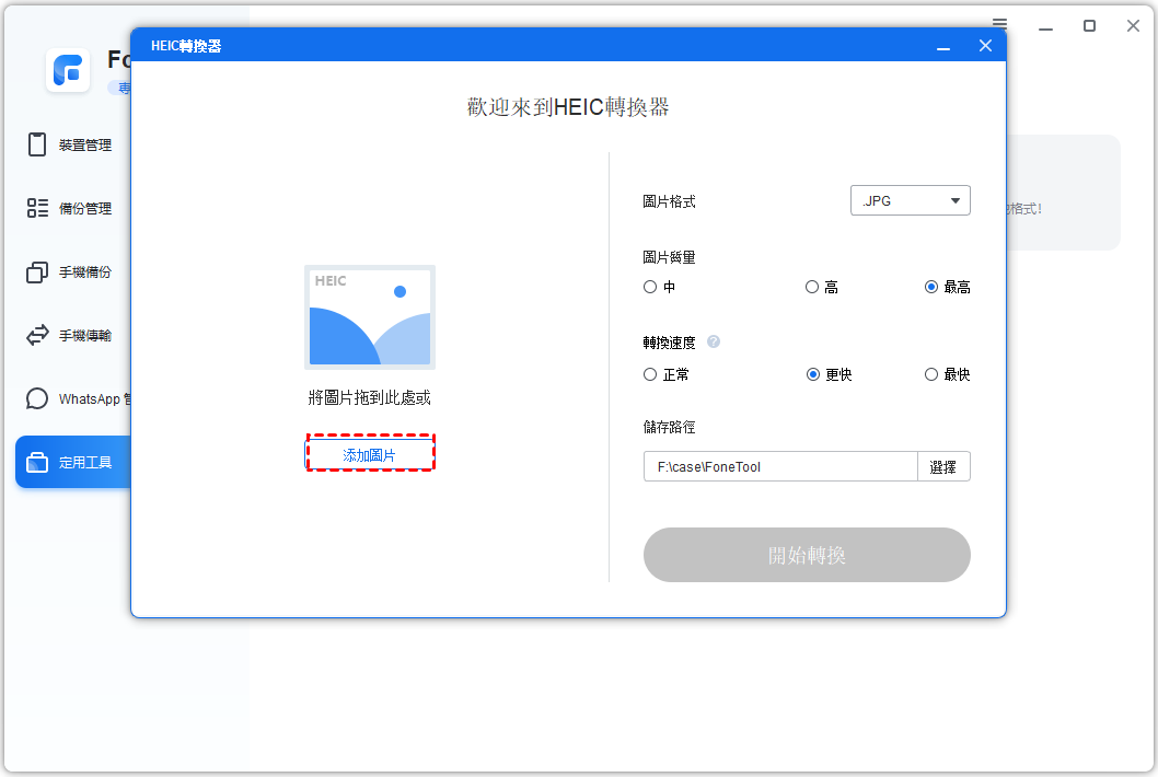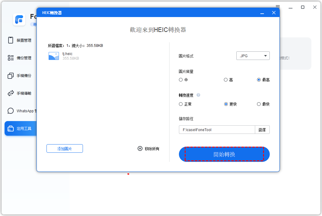 FoneTool是Windows上出色的HEIC轉換器。它可以讓您快速將Apple的HEIC照片轉換為舊格式。