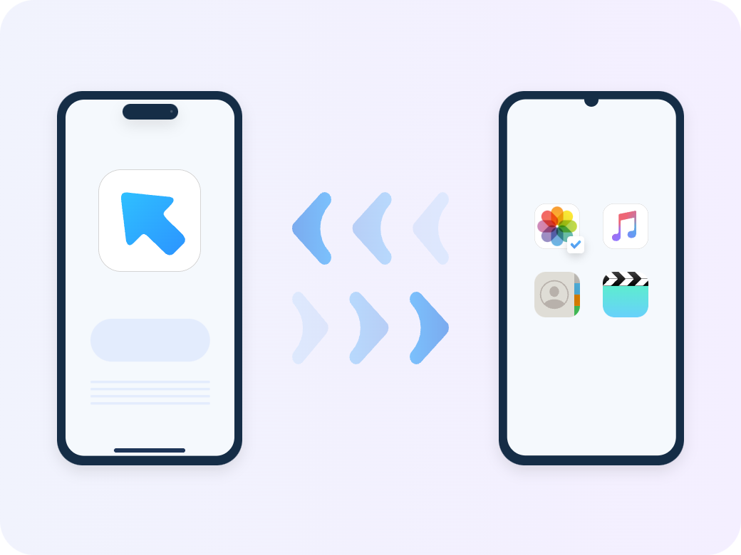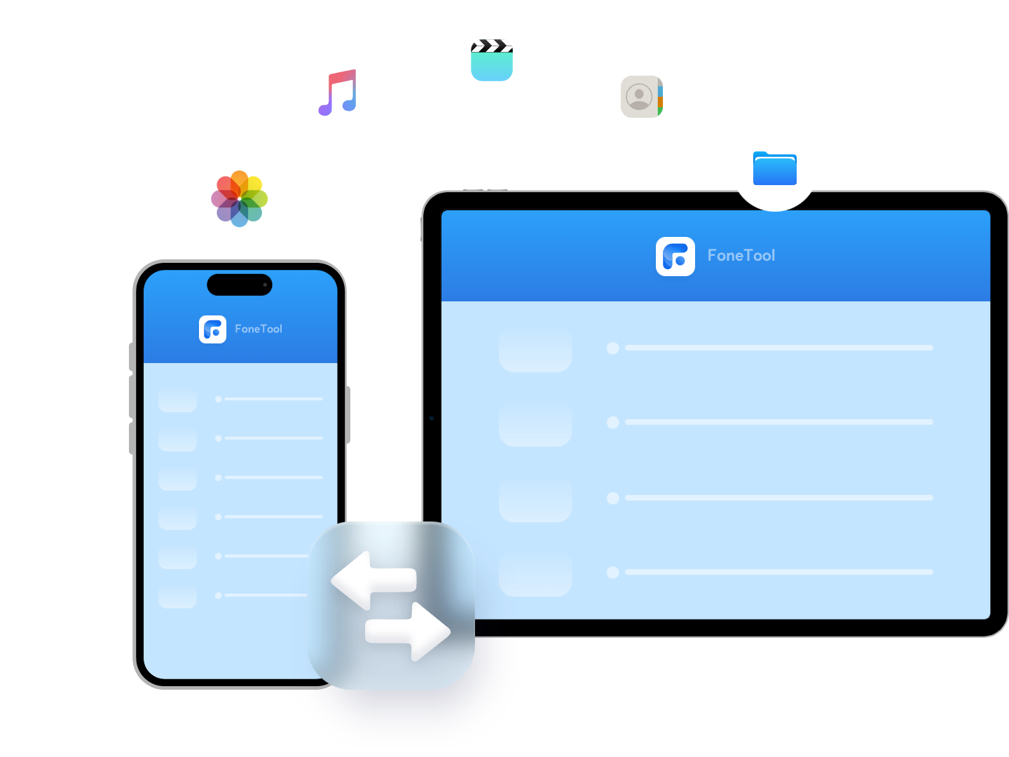 FoneTool可讓您快速將個人資料(包括照片、影片、音樂、聯絡人等)從一台舊iOS裝置(如iPhone、iPad、iPod Touch)傳輸到另一台新裝置。