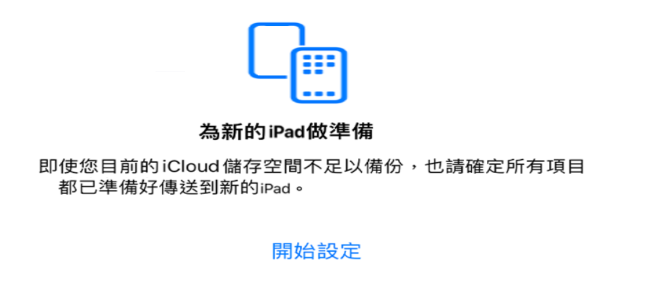 2. 在為新的iPad做準備底下,點一下開始設定。