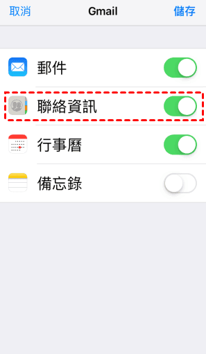 4. 開啓聯絡人將iPhone聯絡人同步到Gmail,再次點擊儲存。