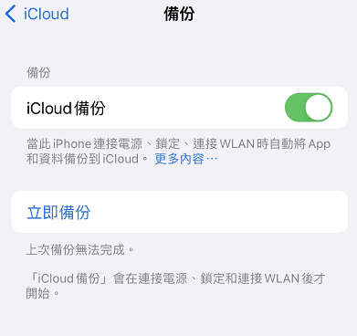打開iPhone設定 > 您的名字 > iCloud > 打開iCloud備份 > 立即備份。點擊立即備份後,iCloud就會開始備份數據,包括iPhone聯絡人。