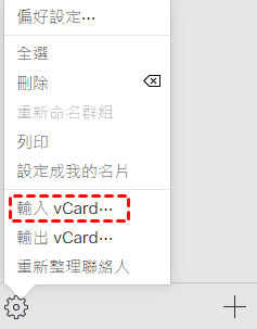 4. 再次點擊設定圖示,點擊匯出vCard...將聯絡人保存到電腦。