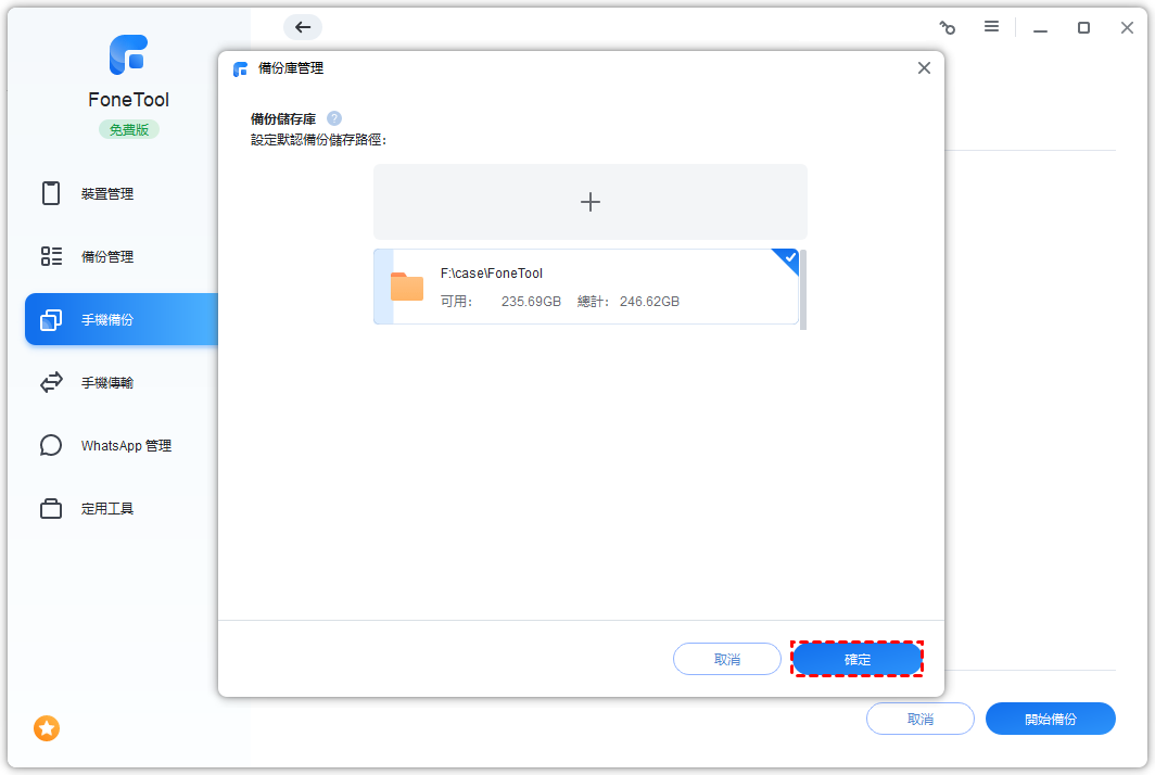 2. 點擊設定備份儲存路徑確定備份路徑,點擊開始備份。