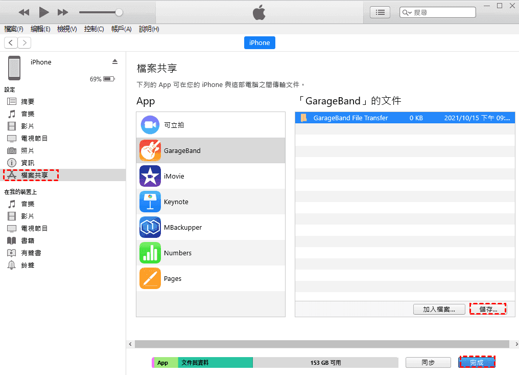 - 傳輸過程完成後,當您的iPad連接到電腦時,您可以在iTunes的檔案共享中瀏覽部分iPad檔案。