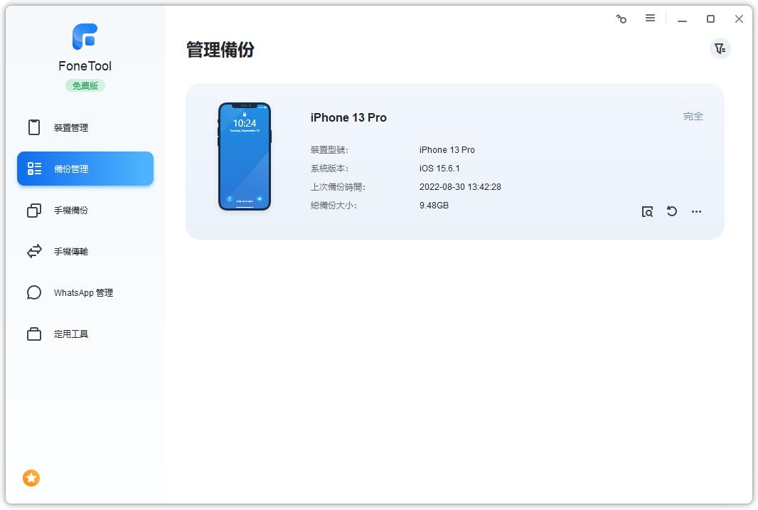 FoneTool,一款免費的 iOS 備份工具,為您提供簡單而完整的 iPhone 備份和回復方案。